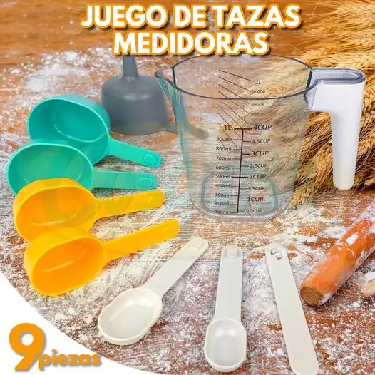 Cuchara y taza medidora colores 8 piezas